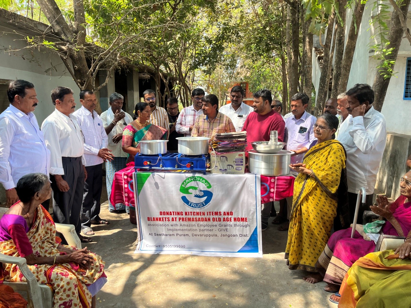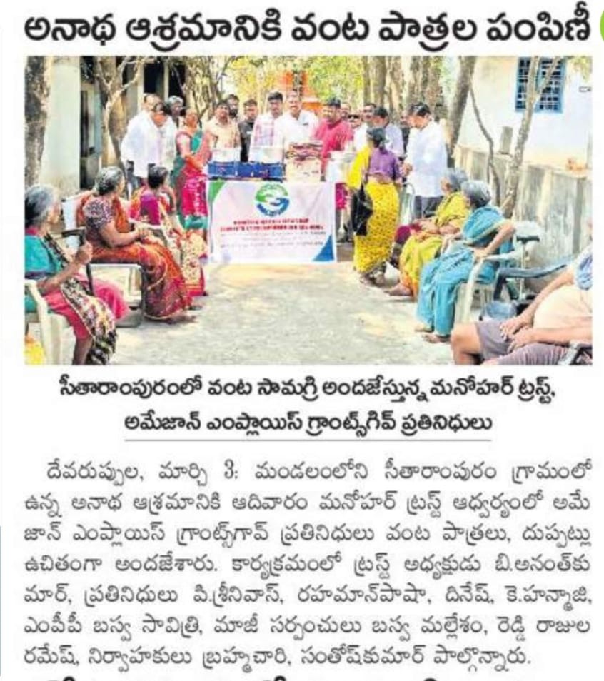 Manohar Trust organized a Kitchen Items and Blankets Distribution Program at Old Age Home, Seetharampuram to support underprivileged families in the community. The initiative was aimed at addressing both daily household needs and providing comfort during the winter season.
